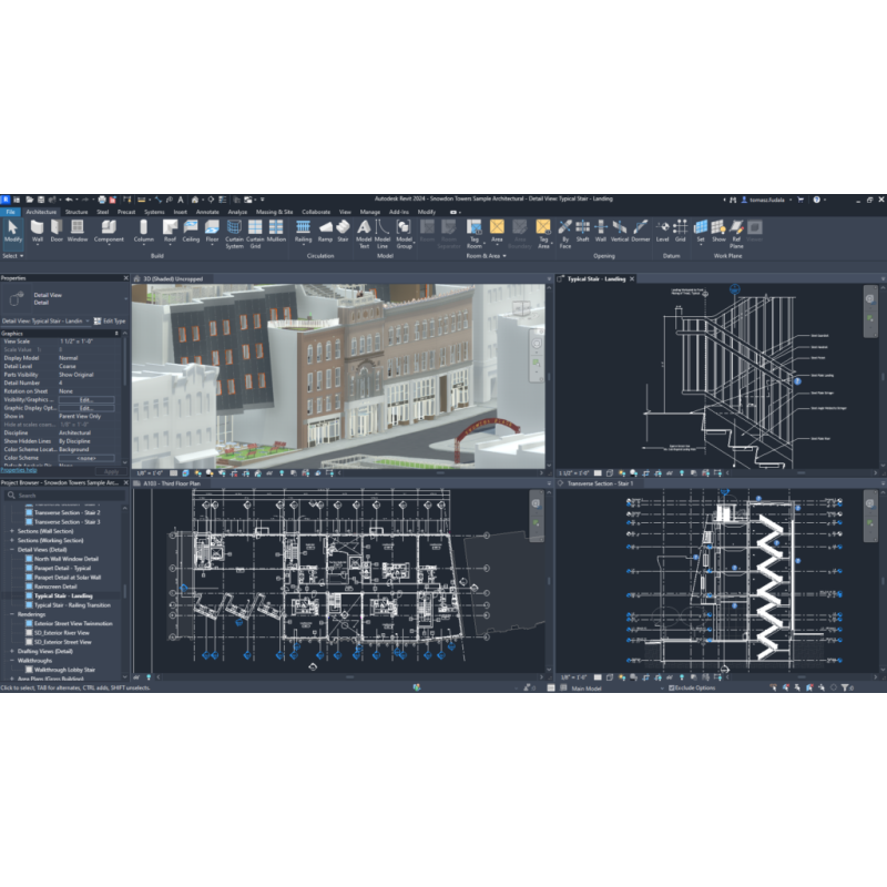 Autodesk Revit предназначен для архитекторов, конструкторов и инженеров-проектировщиков, предоставляет возможности трехмерного моделирования элементов здания и плоского чертежа элементов оформления.
