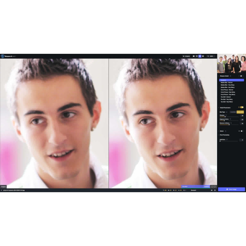 Sharpen AI был обучен миллионам изображений, чтобы он мог изучать характеристики детализации и шума, а затем улучшать только детали. В некоторых случаях он может даже восстановить детали изображения.