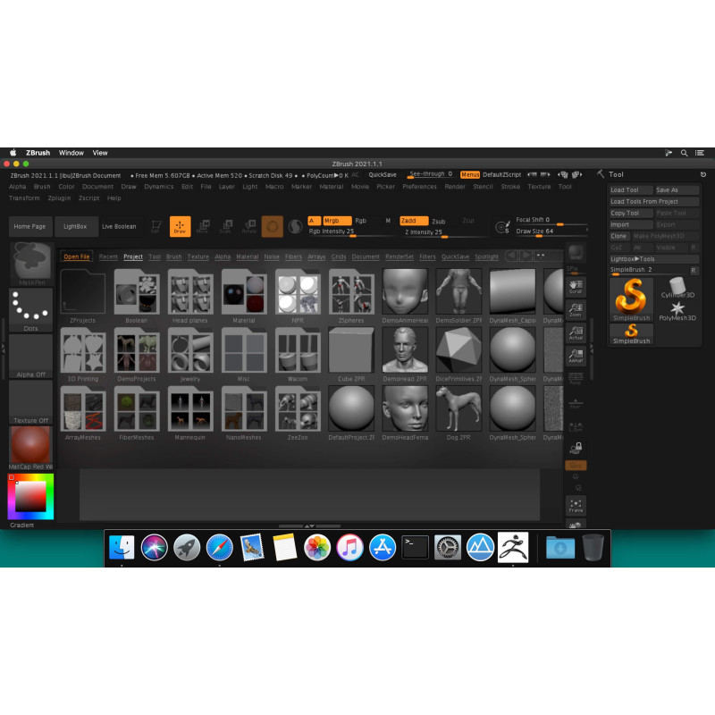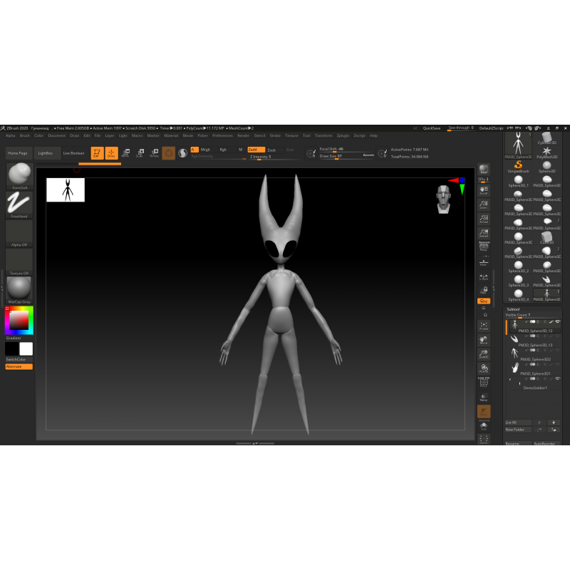 Великий набір інструментів. Функції ZBrush підходять для різних завдань: концепт-арту, створення ігрових персонажів AAA-якості, доопрацювання 3D-сканів, 3D-друку та інших областей, пов'язаних із 3D-моделюванням. До того ж у програмі є безліч варіантів експорту в сторонній софт для подальших операцій.